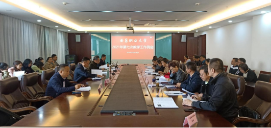 本网讯 教务处薛凡丹 报道 2021年10月19日上午,学校在办公楼会议室211召开了第七次教学工作会议。常务副校长朱占峰、副理事长章指通、副校长罗青平、校长助理黄恩平,教务处、本科职业教育试点办等部门负责人、各学院院长、分管教学副院长、本科专业带头人及教学办负责人参加了会议。本次会议由教务处处长段先志主持。