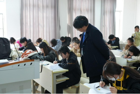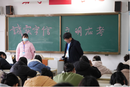 吴校长分别到工程教学楼、一号教学楼的各考场,认真查看了考场布置、考试秩序、监考教师履职和考生答题等情况,并对考试秩序、学生遵守考试纪律等情况进行了细致的检查和指导。