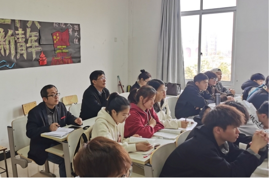 本网讯 通讯员李莎 报道 2023年4月7日上午,校党委副书记、校长吴丁毅在教务处副处长查金旺、马克思主义学院院长助理贾永娟、教务处实践管理科科长张秀伟的陪同下,前往一号教学楼,在222教室听取了马克思主义学院江隆乾老师的《毛泽东思想和中国特色社会主义理论体系概论》课程,上课班级为社会体育指导与管理B2103班。